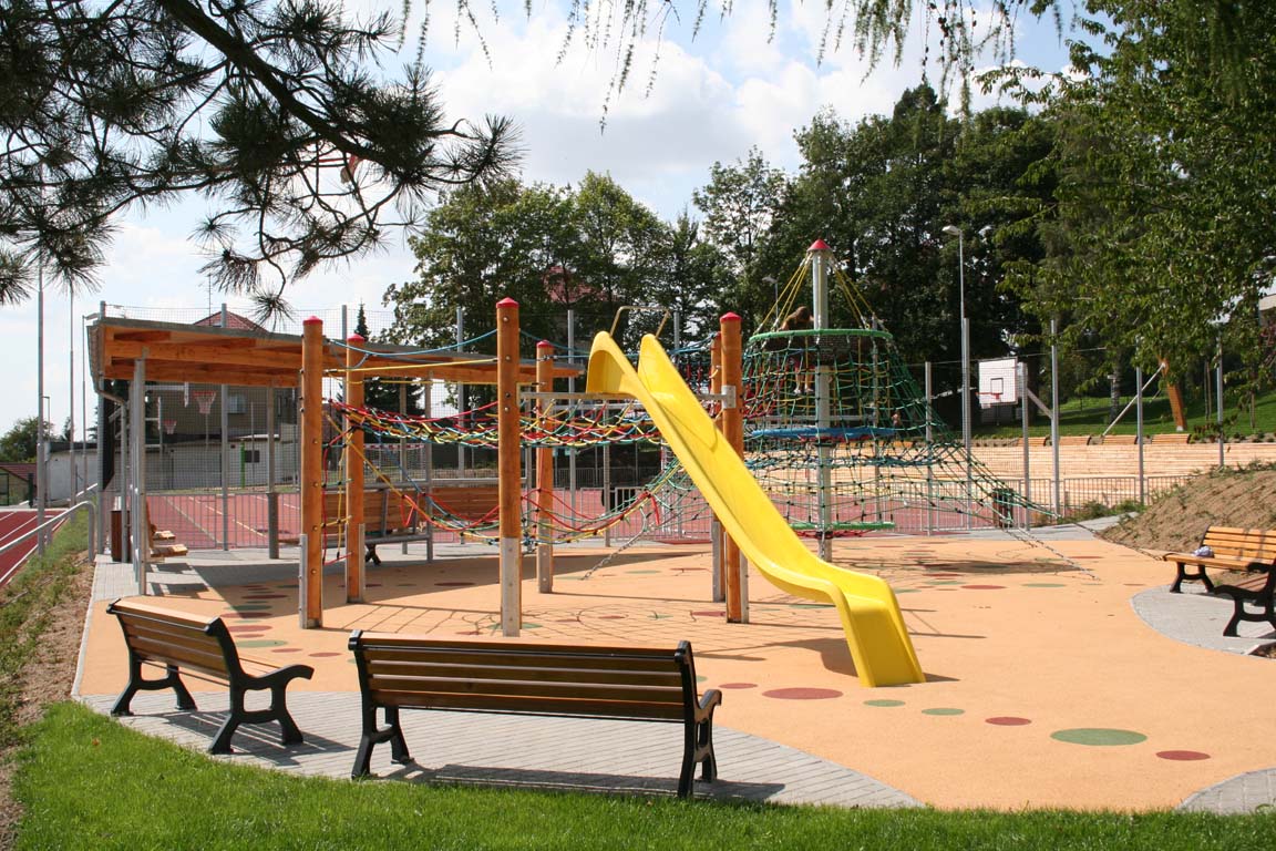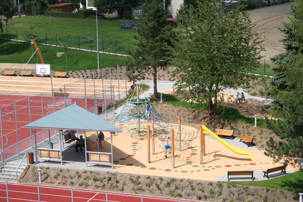 Realizovaná přeměna zanedbané školní zahrady na multisportovní centrum s dětským hřištěm, altánem, venkovní učebnou a ohništěm.