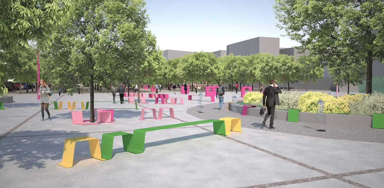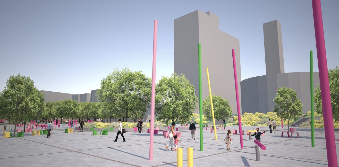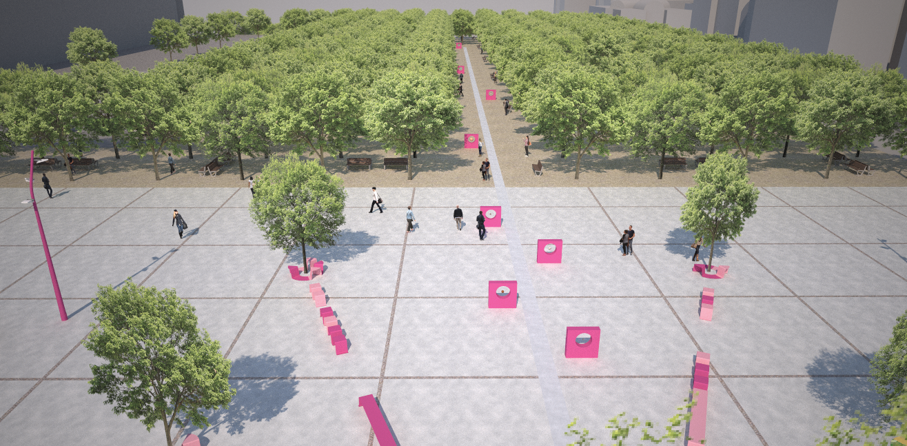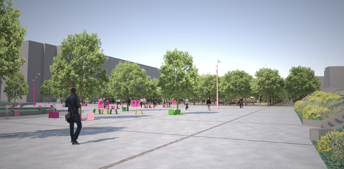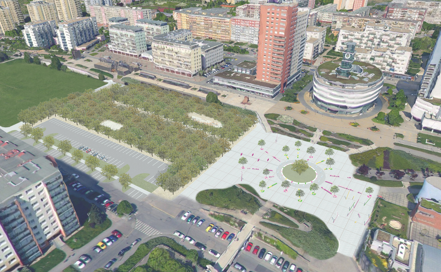 Cílem návrhu proto bylo vytvořit náměstí, tedy urbanizovaný městský prostor, kde by obyvatele městské části, kteří dnes pouze procházejí, lákalo příjemné prostředí k zastavení, posezení, setkávání, hře, osvěžení.