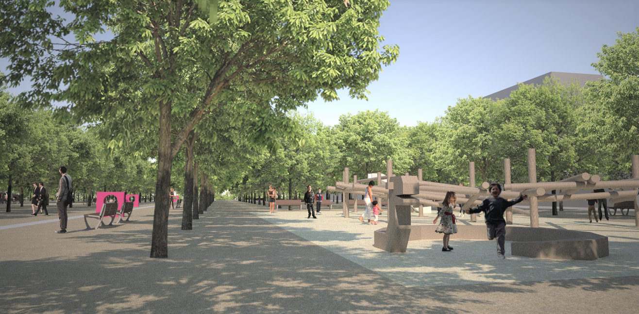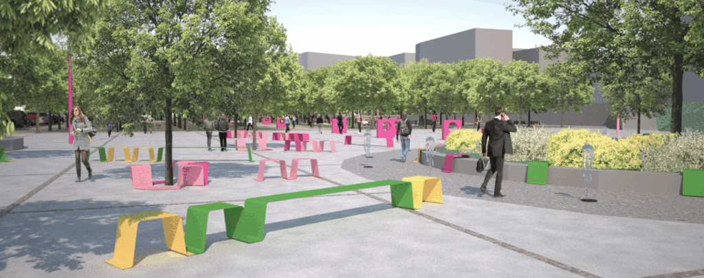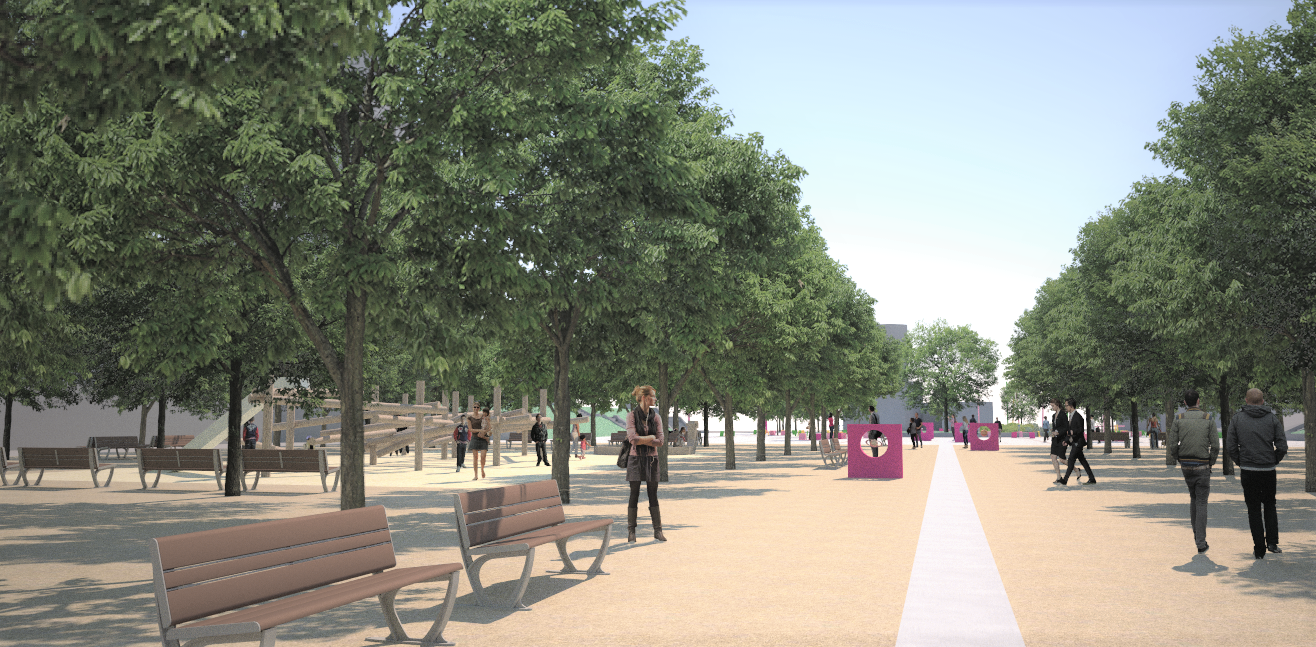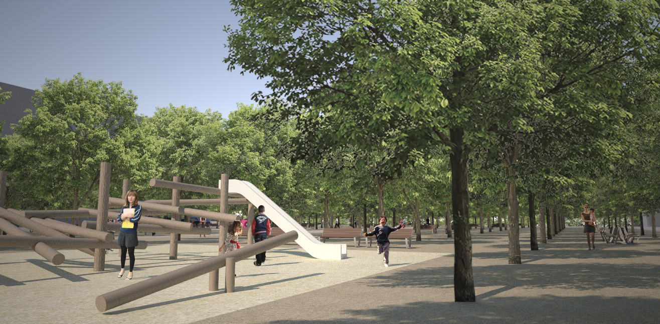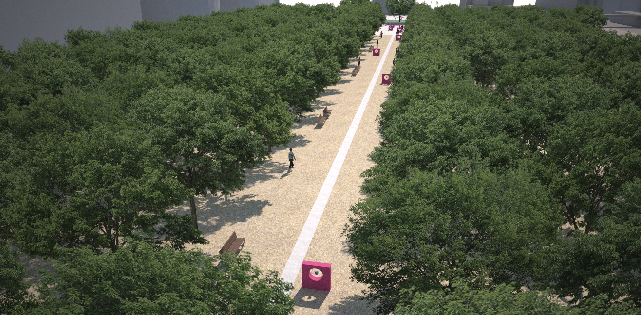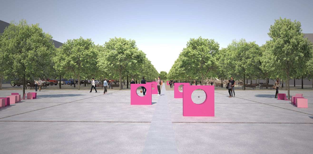 Cílem návrhu proto bylo vytvořit náměstí, tedy urbanizovaný městský prostor, kde by obyvatele městské části, kteří dnes pouze procházejí, lákalo příjemné prostředí k zastavení, posezení, setkávání, hře, osvěžení.