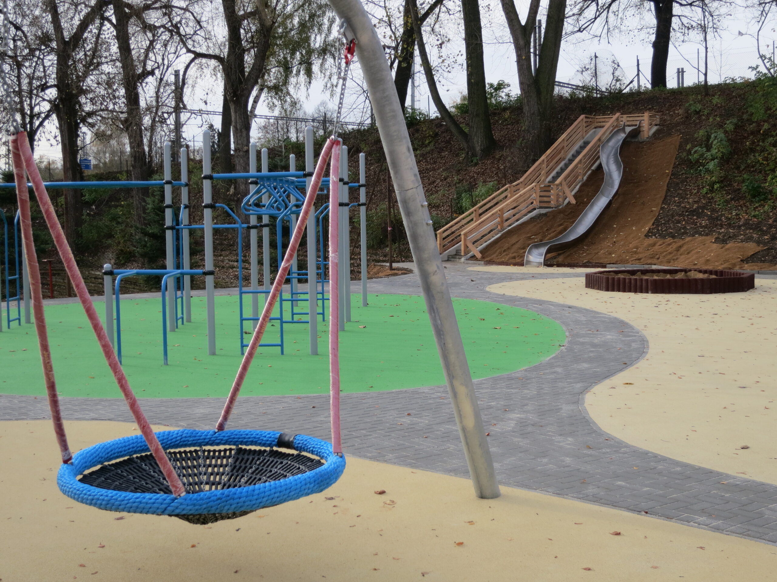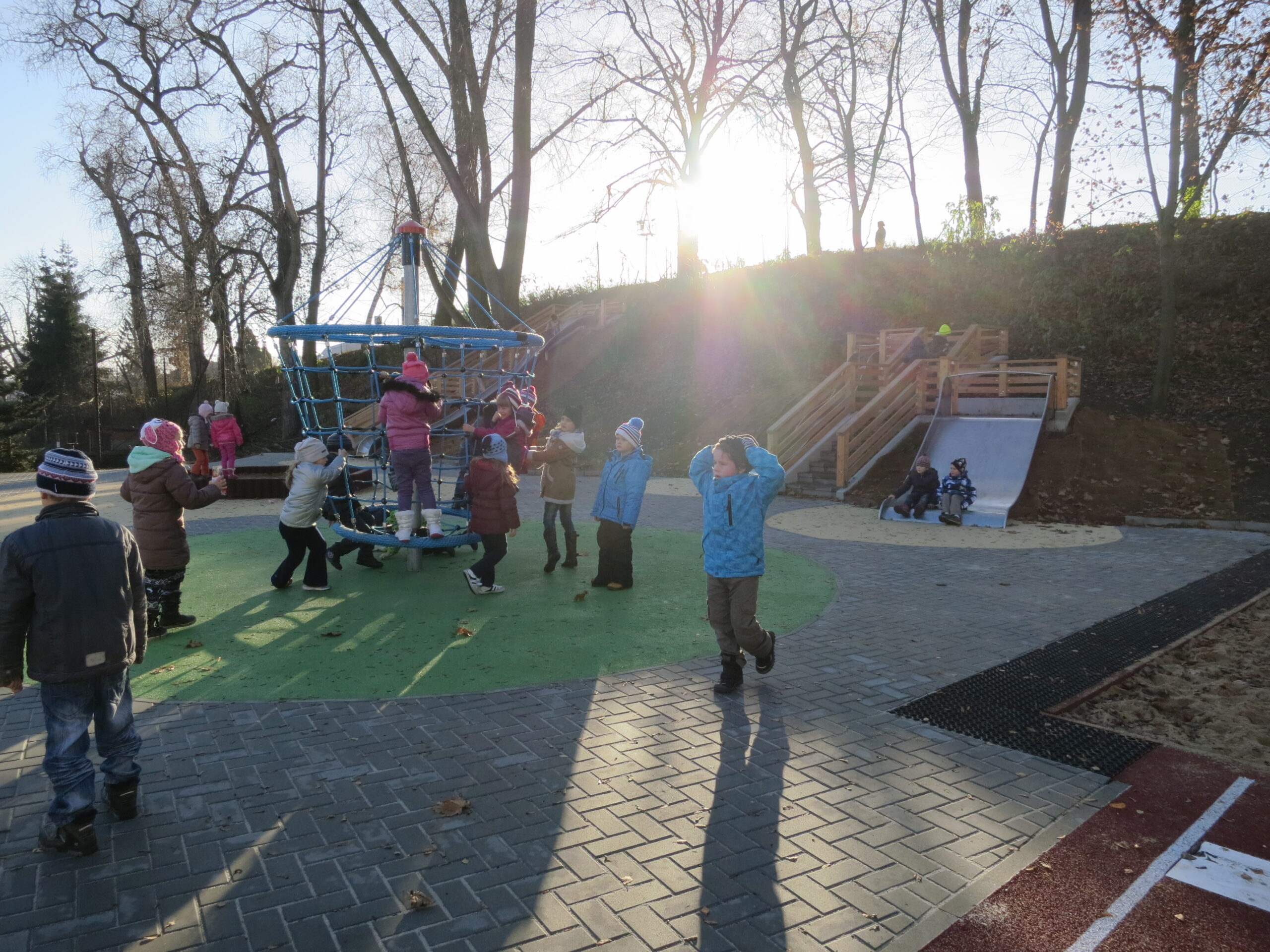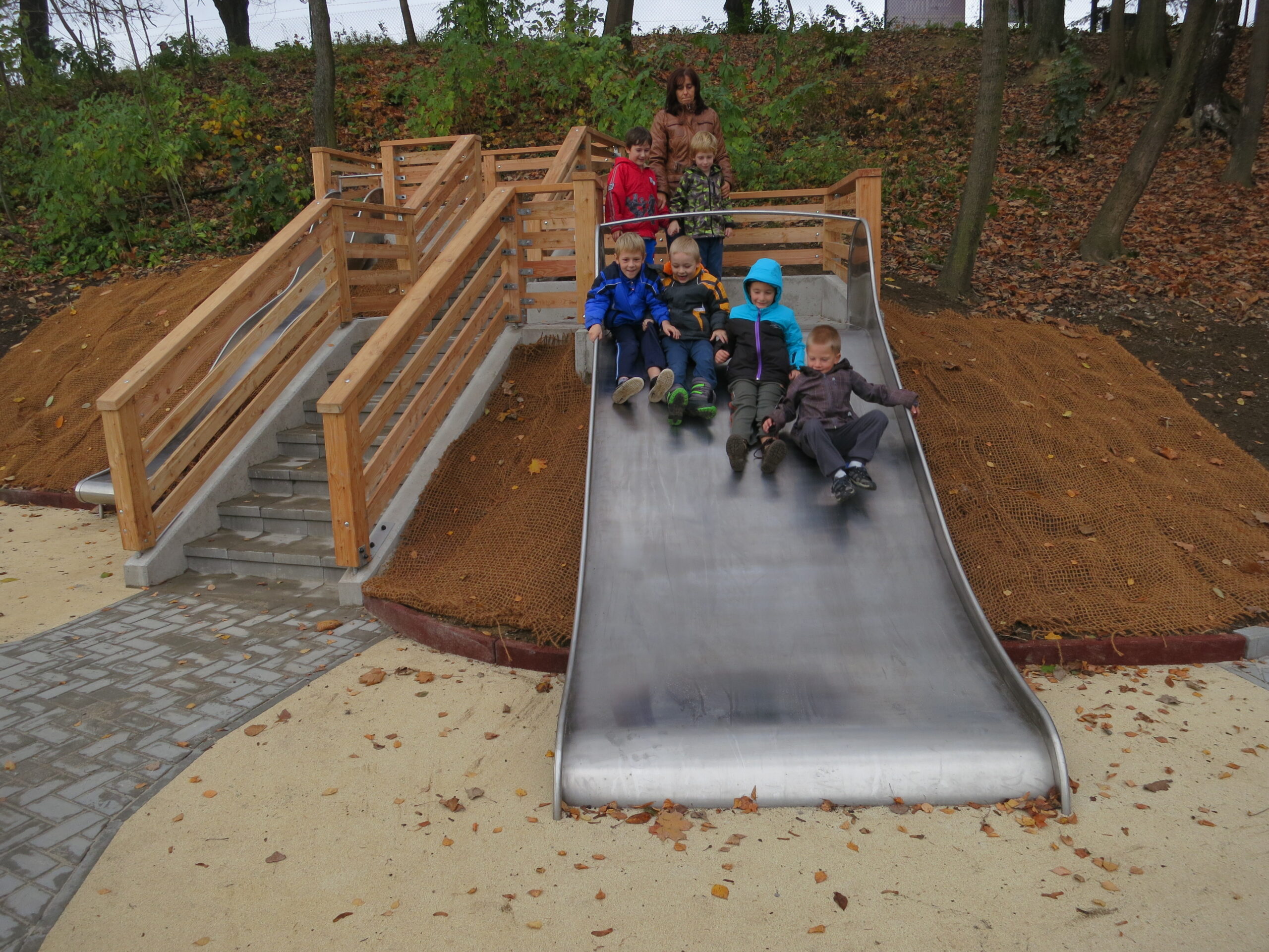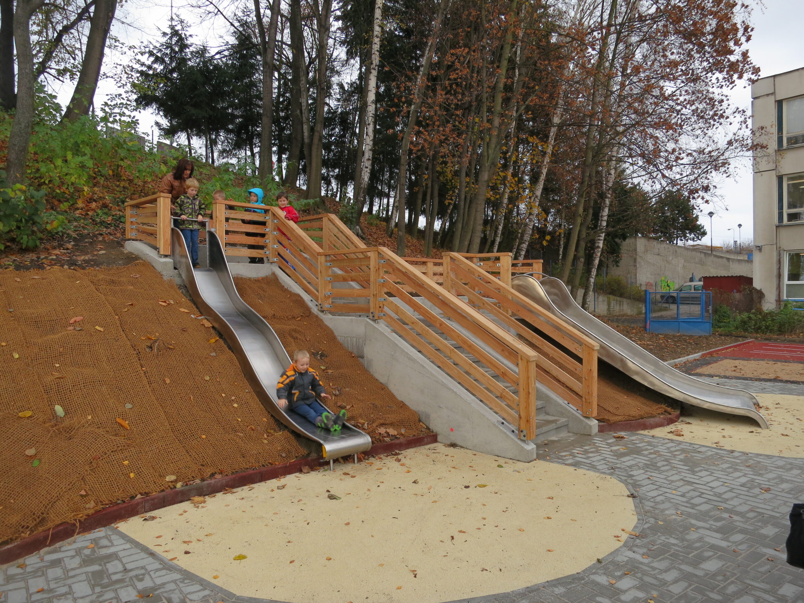 Dětské hřiště je vybaveno dvojicí lezeckých sestav, hromadnou houpačkou – hnízdo, trojicí klouzaček umístěných ve svahu a pískovištěm.Cena kompletní realizace roce 2013 byla 4.60 mil.Kč + DPH
